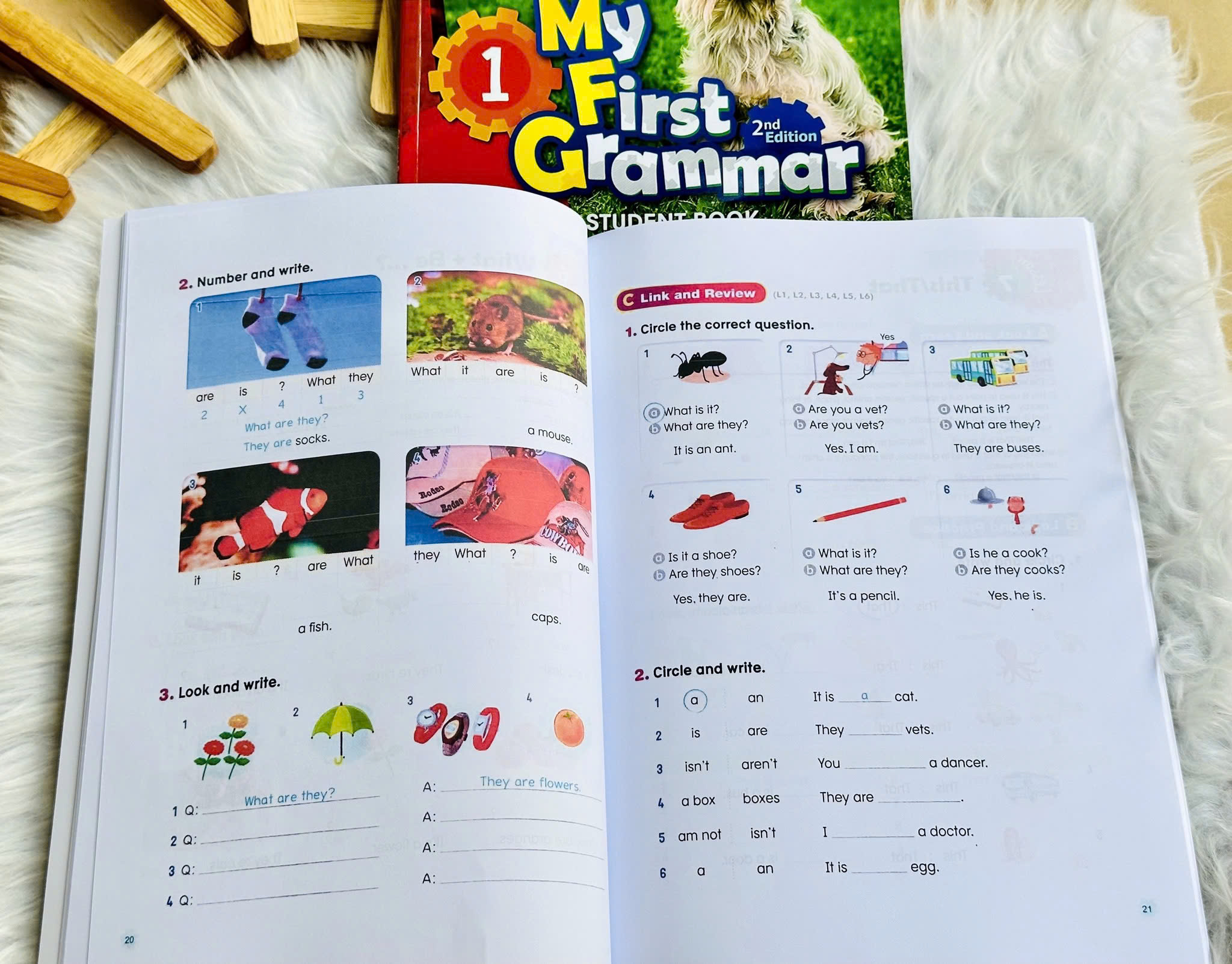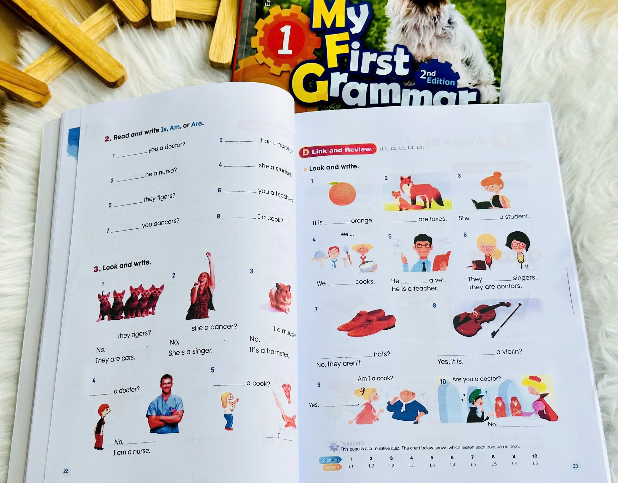 ✍ Phiên bản mới của My Firts Grammar vẫn là 1 loạt ngữ pháp thú vị và dễ dàng được thiết kế cho học sinh tiểu học.