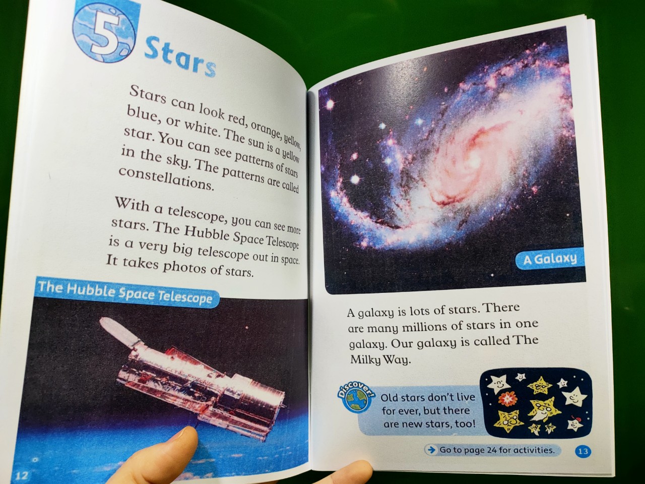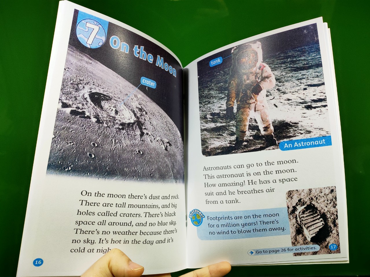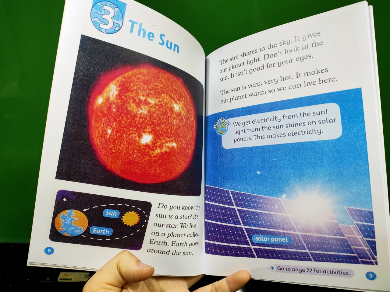 - Phần nội dung chính: đi sâu khai thác chủ đề mà cuốn sách đó nói đến 1 cách chi tiết, cụ thể, tỷ mỉ giúp người đọc hình dung ra tốt hơn: Ví dụ về về chủ đề “In the sky” thì sẽ tập trung khai thác ban ngày bầu trời như thế nào, buổi tối thì thế nào kèm theo hình ảnh về thế giới tự nhiên vô cùng chân thực mà bé sẽ ngỡ như là đang xem trên kênh Discovery luôn đó ạ.