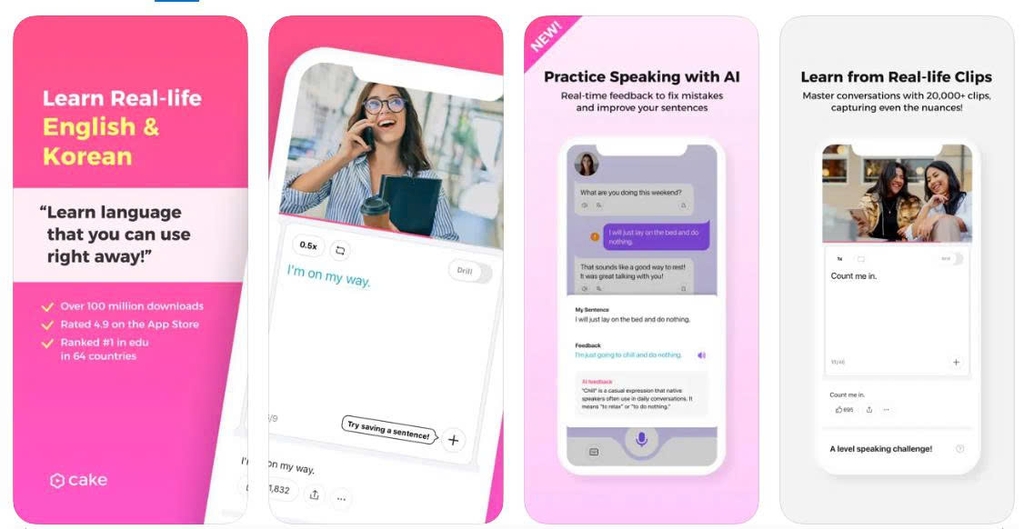 Cake sử dụng các đoạn clip chỉ vài giây từ phim 🎥, vlog 📹, hoạt hình 🐱... giúp bạn học nhanh, nhớ lâu.